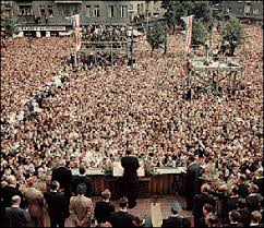 Standing within gunshot of the Berlin wall, he lashed out at the Soviet Union and praised the citizens of West Berlin for being “on the front lines of freedom” for more than 20 years.